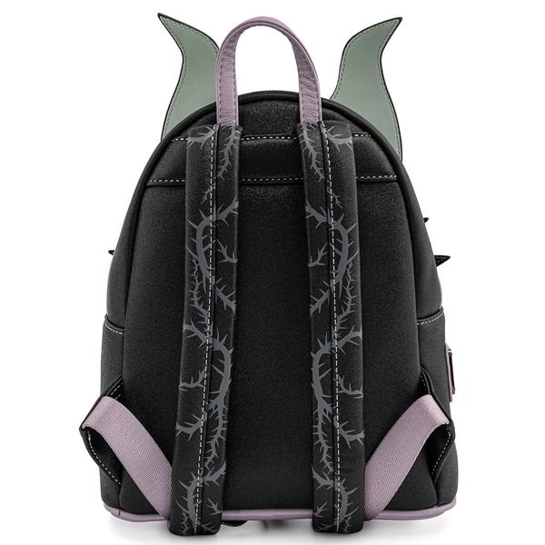 Mochila del increíble fabricante Loungefly hecha en piel sintética con asas y cremallera con detalles de Maléfica perteneciente a La Bella Durmiente de Disney