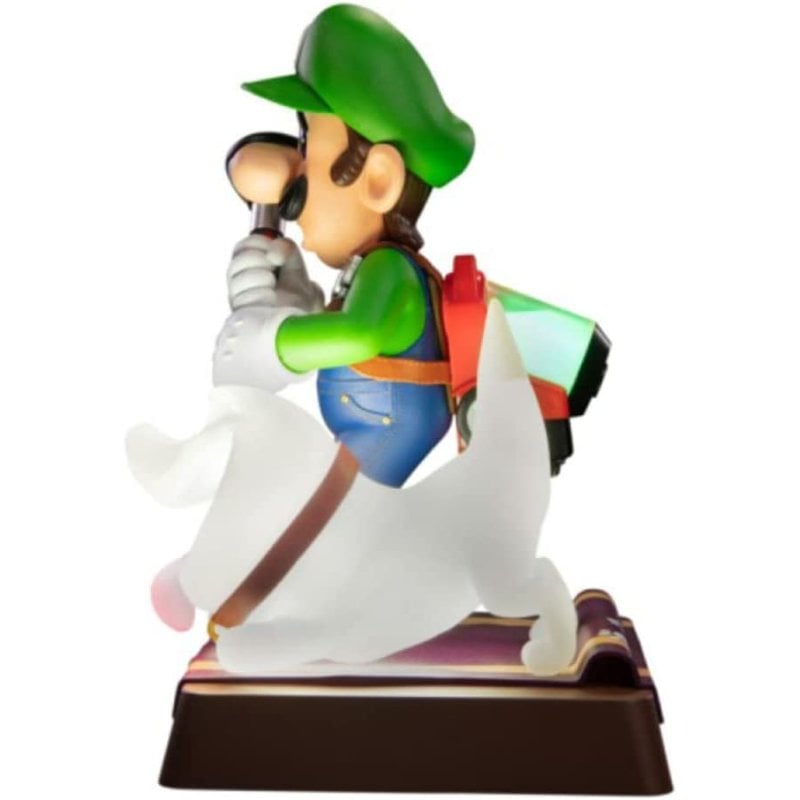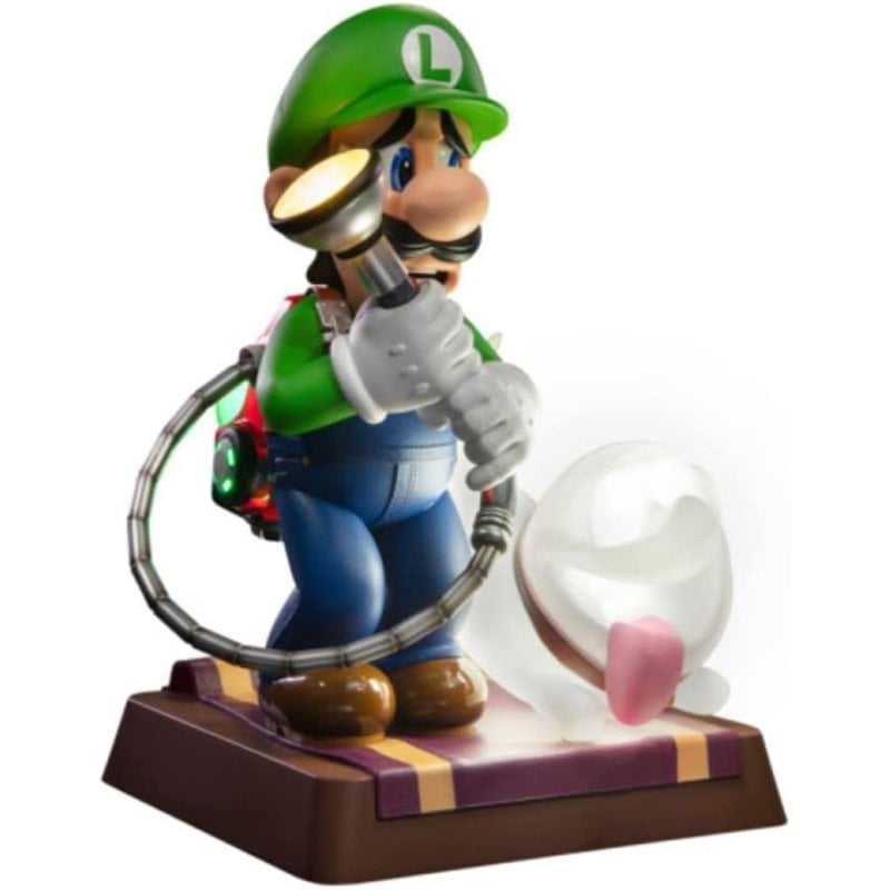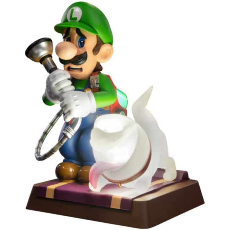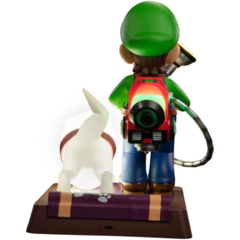 First 4 Figure presenta esta figura basada en el personaje de Luigi, basado en el videojuego para Nintendo Switch, "Luigi's Mansion 3". Esta figura está hecha en PVC, mide unos 25 cm e incluye base para exposición. La edición de coleccionista de esta estatua viene con el adorable compañero de confianza de Luigi, Polterpup, y tanto el Poltergust G-00 como el Polterpup cuentan con funciones LED brillantes. Además, en su base detallada hay huellas de patas que brillan en la oscuridad. Batería de litio 18500+ y cable micro USB no incluidos.
