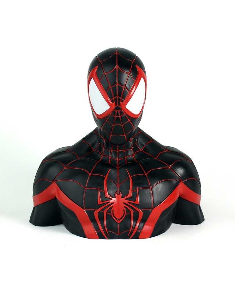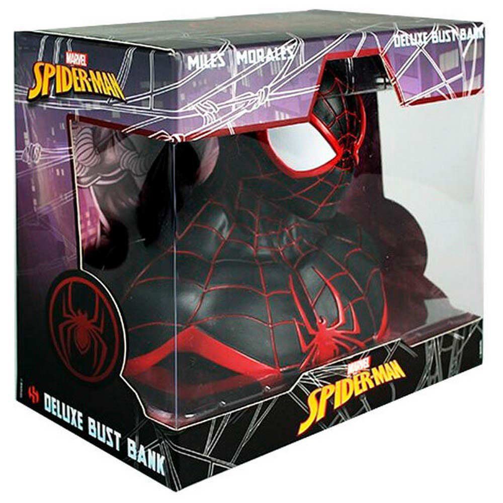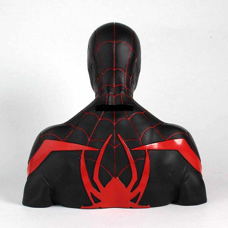 Hucha de PVC de unos 20 cm basada en el personaje de Miles Morales de Marvel.