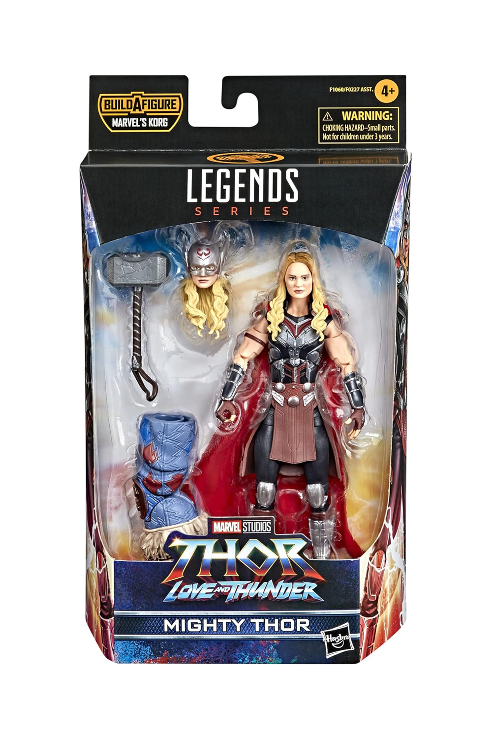 Hasbro Fans presenta esta figura de Mighty Thor dentro de la colección Marvel Legends basado en su aparición en Thor: Love and Thunder. La vida de Jane Foster cambia para siempre cuando adquiere el martillo Mjolnir y se transforma en Mighty Thor. Se incluyen 4x accesorios y una parte de Korg para montar el figure building.