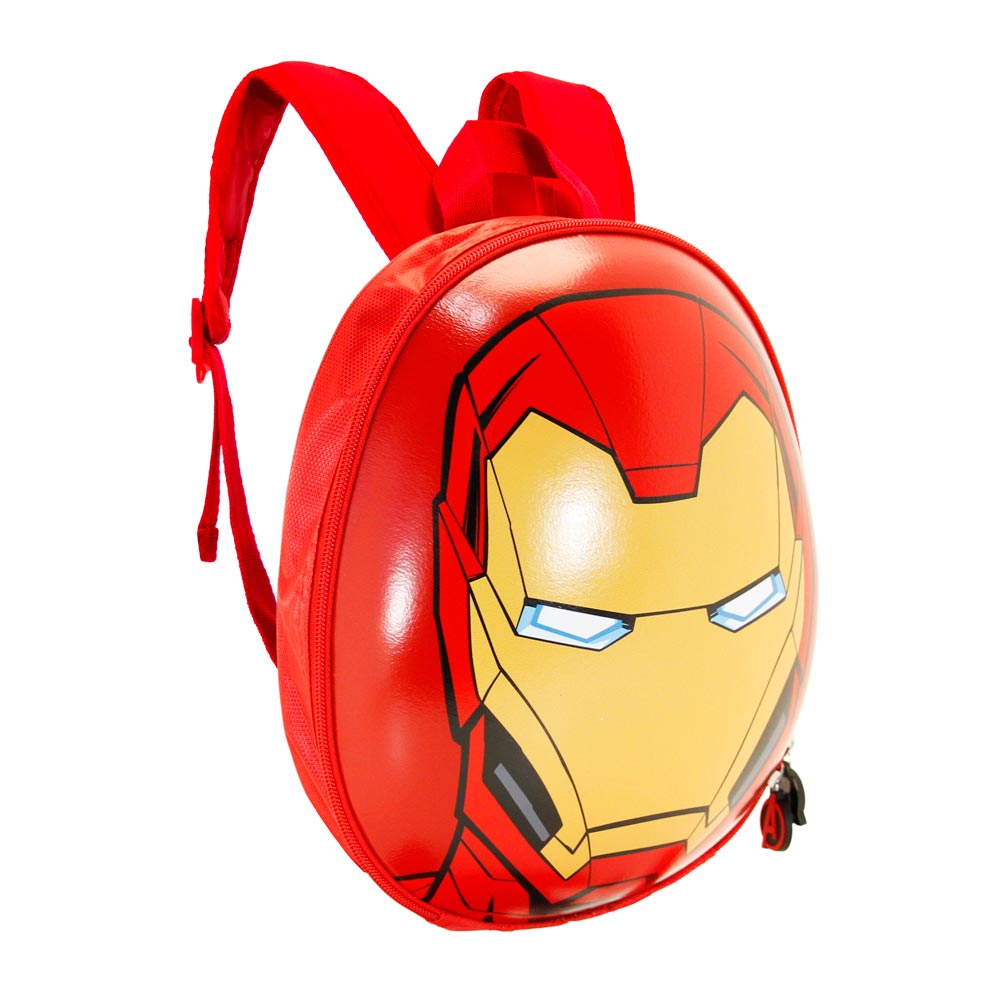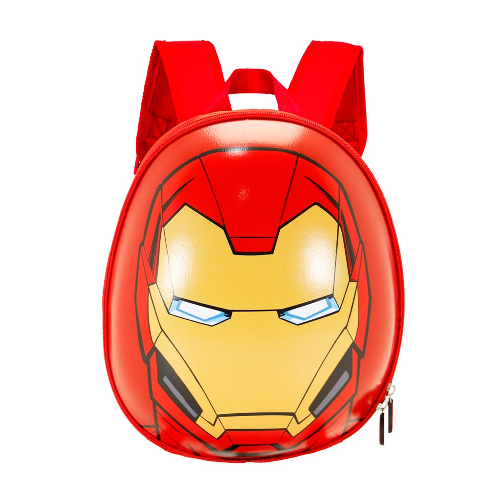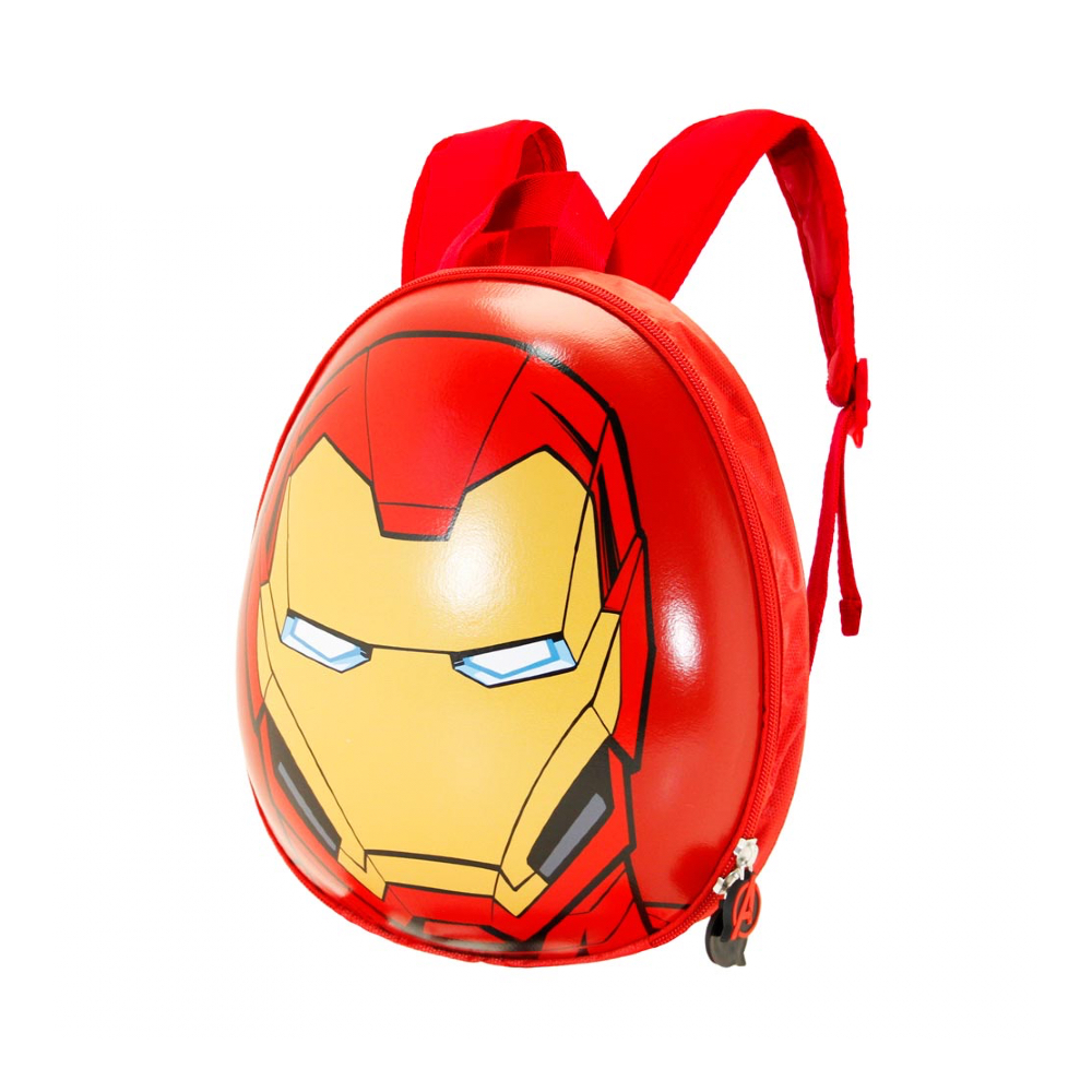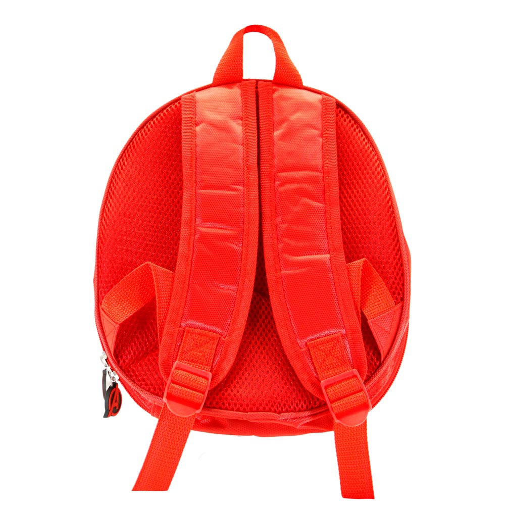 Mochila infantil con forma de caparazón, trasera acolchada y asas ajustables. Compartimento único cerrado con cremallera y bolsillo interior.