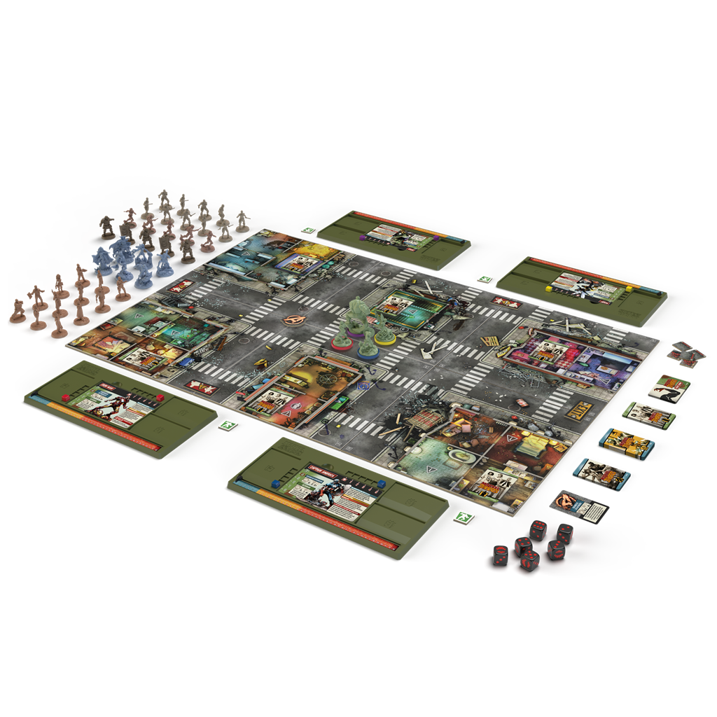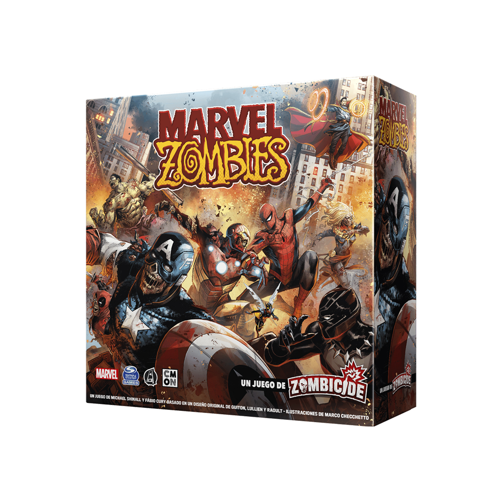 Marvel Zombies - Un Juego de Zombicide es un juego cooperativo en el que de 1 a 6 jugadores controlan a superhéroes zombificados que se enfrentan a agentes de S.H.I.E.L.D. y a superhéroes aún vivos manejados por el propio juego. ¡Para ganar debes completar los objetivos de la misión, derrotar a tus enemigos y, lo más importante de todo, saciar tu hambre voraz! Al eliminar enemigos y devorar transeúntes te haces más poderoso, pero cuanto mayor sea el peligro que representas, más fuerzas enviarán a cazarte. El hambre siempre en aumento te hará más fuerte, pero si no te alimentas, consumirá tu mente y tu cuerpo. ¡Solo trabajando en equipo podrán los Héroes Zombis hallar la clave de su salvación!