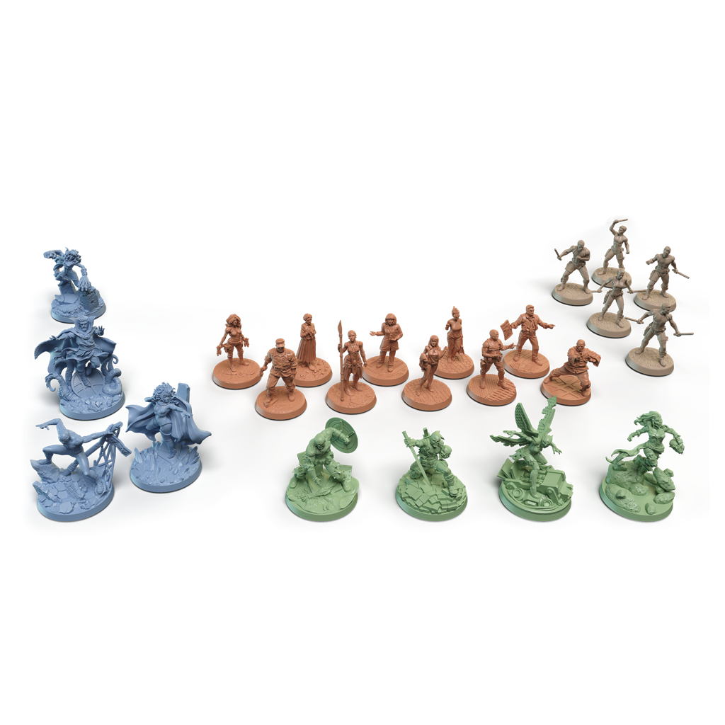 87 miniaturas, 6 peanas de colores, 6 paneles de control, 12 cubos indicadores, 6 dados, 9 módulos de tablero de doble cara, 12 tarjetas de identificación, 128 minicartas, 41 fichas, 1 reglamento.