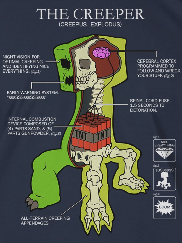 Molona camiseta Minecraft con el diseño de la Anatomia de un Creeper