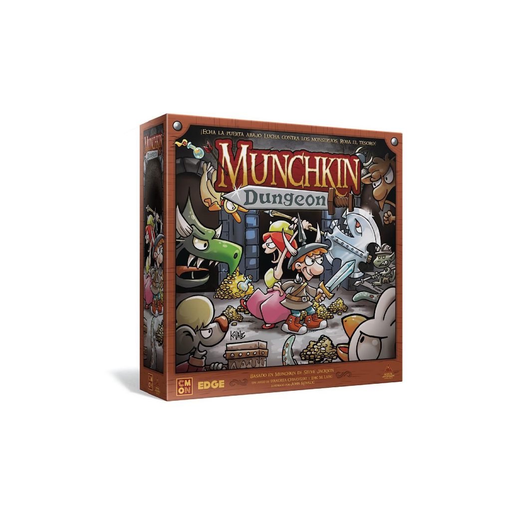 "Munchkin Dungeon" es un juego de tablero, de 2 a 5 jugadores, en el que tu estrategia te permitirá avanzar rondas y llegar a la batalla final