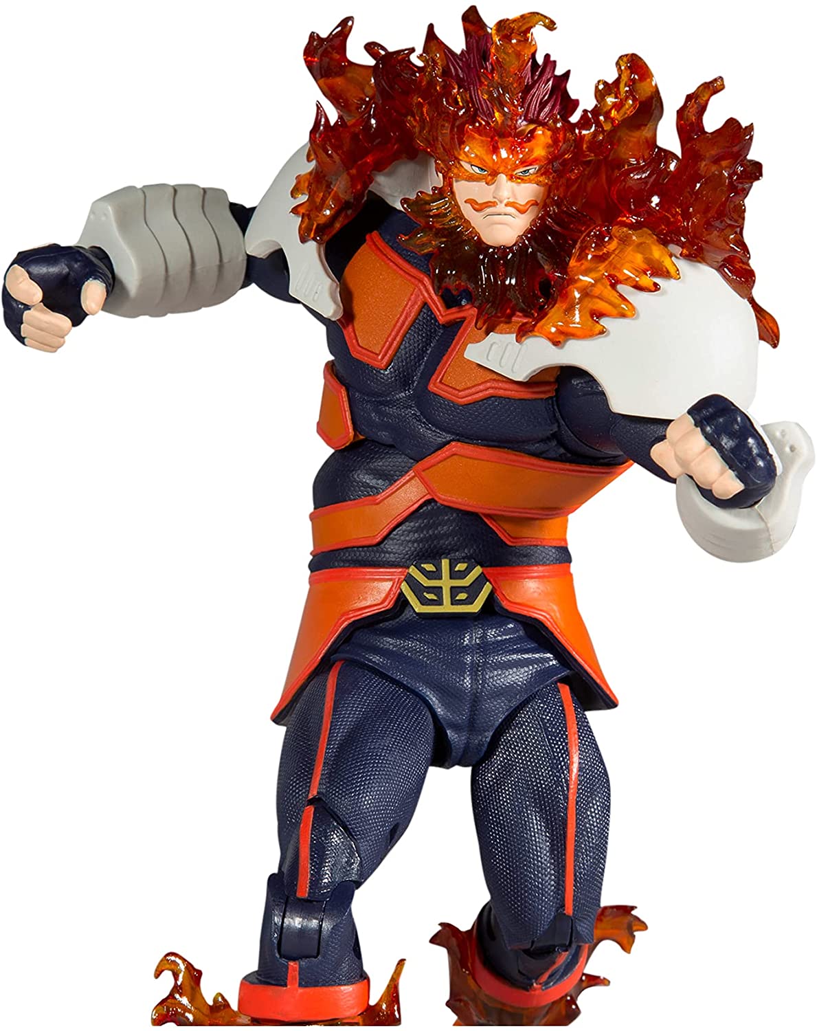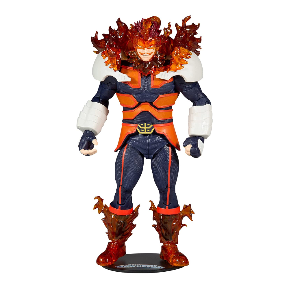Figura McFarlane de 15 cm basada en el anime My Hero Academia del personaje Endeavor, aparece con su traje de héroe de la cuarta temporada con hasta 22 partes móviles. Con llamas transparentes para imitar su aspecto icónico. Viene con una base