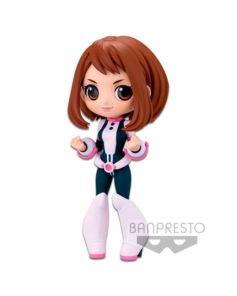 Banpresto presenta dentro de la línea de figuras Q Posket la figura de Ochaco Uraraka basada en el universo de "My Hero Academia". Se trata de una figura estática de 14 cm hecha en PVC. Incluye base soporte para exponerla.