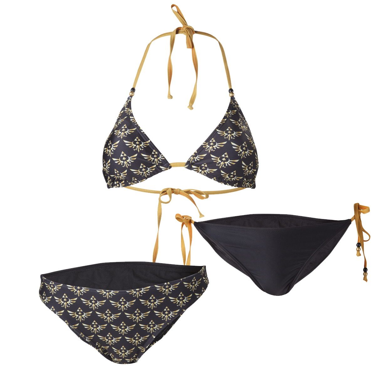 Presume durante el verano con tus amigos y amigas de tu pasión por los videojuegos con este fabuloso diseño de Bikini basado en The Legend of Zelda. ¡Siente el poder de la Trifuerza!