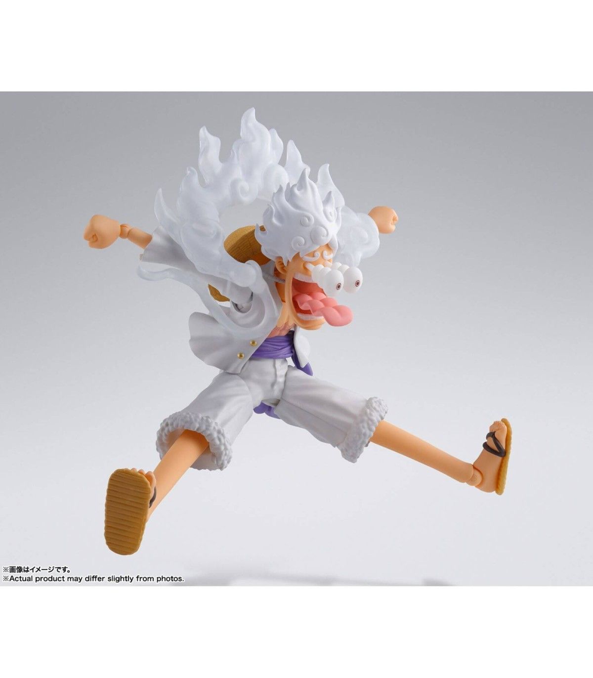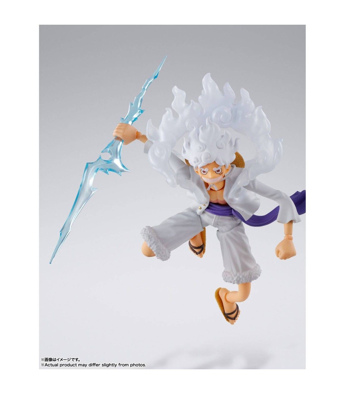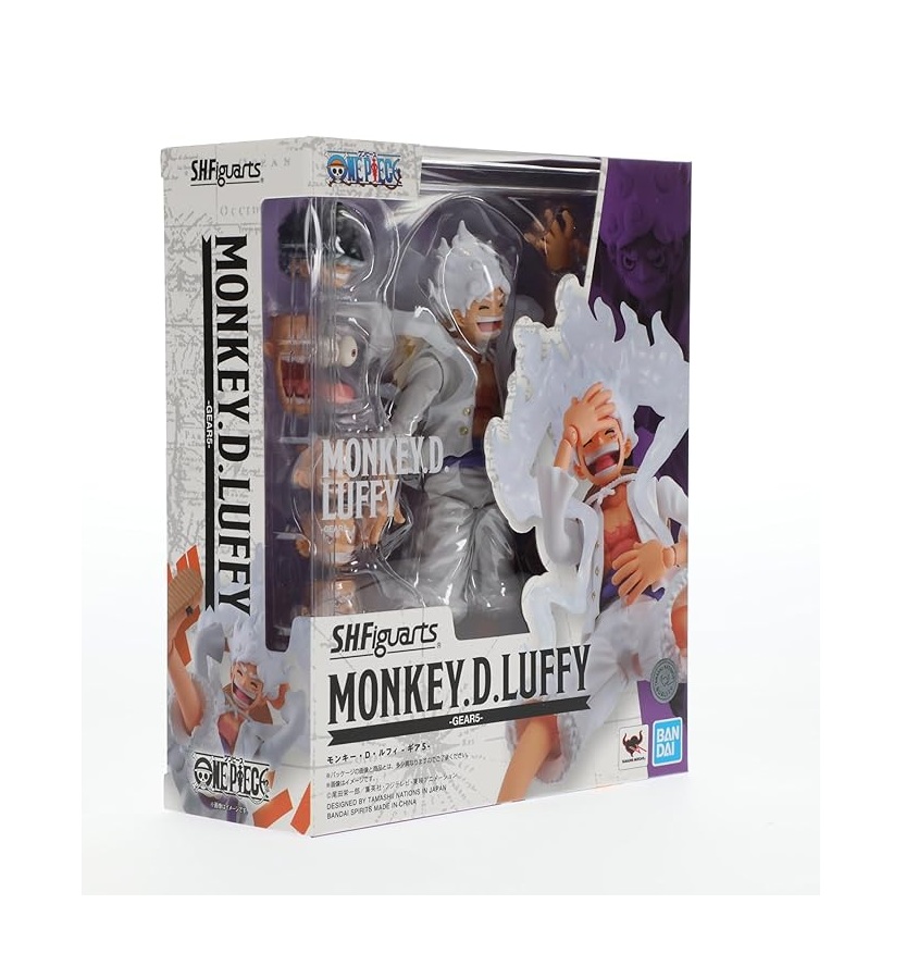 Tamashii Nations presenta dentro de la colección S.H FIGUARTS, la figura de MONKEY D. LUFFY GEAR 5. Está basada en su aparición en el manga/anime "One Piece" y mide 15,5 cm. Incluye 4x piezas faciales intercambiables, 3x pares de manos intercambiables, 2x brazos moldeables, Kaminari, 1x soporte y un juego de piezas de cabeza para la figura de Monkey D. Luffy The Raid on Onigashima (esta última se vende por separado).