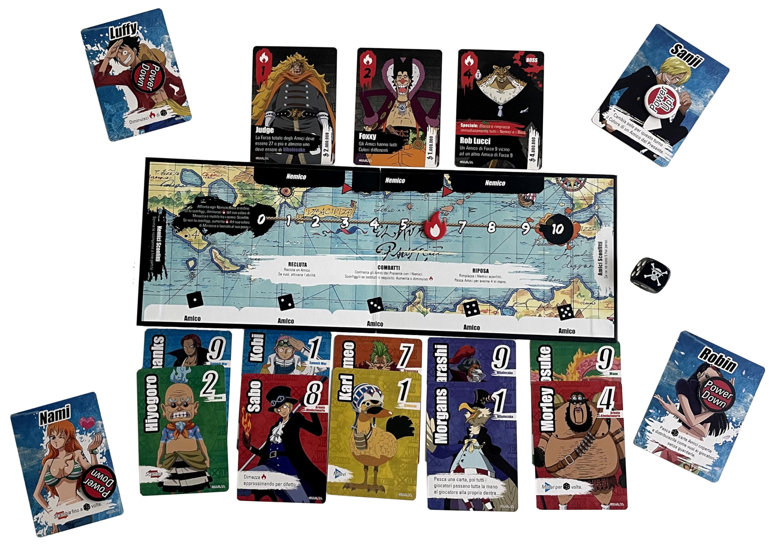 Recluta a nuevos amigos, resuelve misiones para derrotar a tus enemigos y ¡conviértete en el Rey Pirata! One Piece NAKAMA: amigos y enemigos (One Piece Nakama: Friends & enemies en su versión original) es un juego de mesa cooperativo para 1-5 jugadores con 100 personajes del mundo de One Piece.