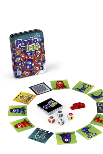Alguien olvido cerrar correctamente los recipientes de las muestras y ahora se ha desatado el caos. Todas las amebas huyen despavoridas mientras los perplejos científicos tratan de recuperarlas. ¡Cunde el pánico en el laboratorio! Panic Lab es un trepidante juego para 2 a 10 jugadores en el que sólo conseguirás ganar si mantienes la cabeza fría y haces gala de unos reflejos felinos. En Panic Lab no existen los turnos, ¡todo el mundo juega a la vez! Se tiran los 4 dados especiales y ¡a buscar la ameba a la fuga! No es tan fácil como parece. Las amebas son astutas y escurridizas y no dudarán en esconderse en los conductos de ventilación o, ¡peor aún!, mutar. Panic Lab es un juego sencillo, fresco y divertidísimo que hará las delicias de toda la familia. Además, sus componentes son muy atractivos y se presenta en una irresistible caja metálica. Panic Lab es un juego de Dominique Ehrhard.