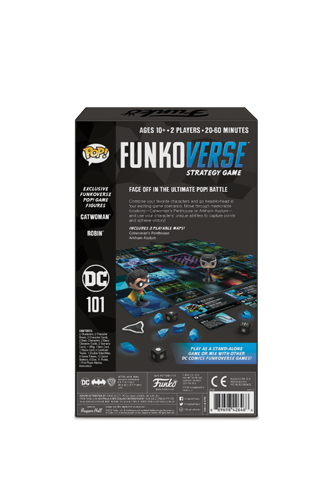 En DC 101 combine personajes adicionales en 4 escenarios de juego adicionales en lugares memorables como Arkham Asylum o Catwoman’s Penthouse con Catwoman ™ y Robin ™. ¡Juega de forma independiente o mézclate con otros juegos de DC Funkoverse!