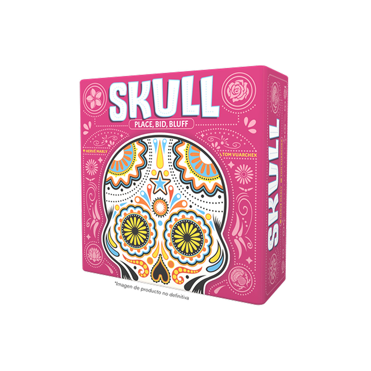 Coloca, apuesta y miente. A cuántos discos les puedes dar la vuelta antes de revelar una calavera. Skull es un juego de faroles y riesgos. En tu turno, debes colocar un disco bocabajo sobre tu tablero o apostar a cuántos discos piensas que puedes darles la vuelta sin revelar una Calavera. Contenido: 6 conjuntos de componentes que incluyen 1 tablero individual y 4 discos (3 de Flores y 1 de Calavera)