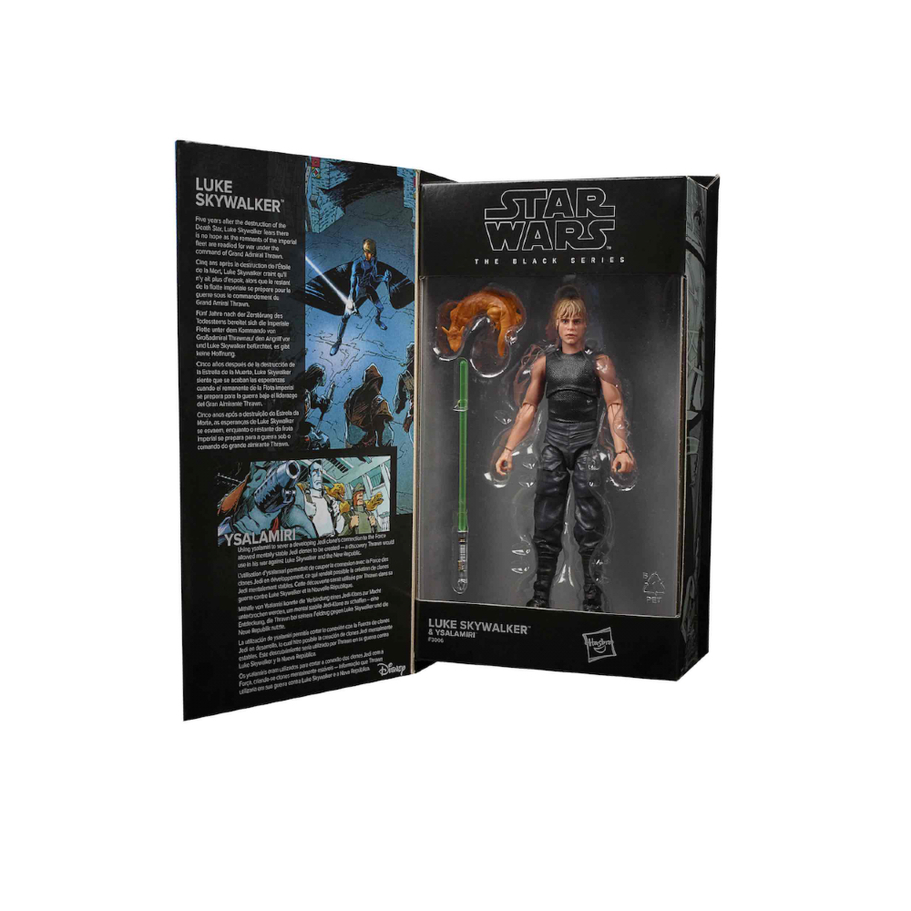 Hasbro presenta dentro de su colección Black Series, y celebrando el 50 aniversario de Lucasfilm, basada en el universo Star Wars la figura de Luke Skywalker, junto a Ysalamiri. Se trata de una figura articulada que mide unos 15 cm de alto. Incluye varios accesorios.