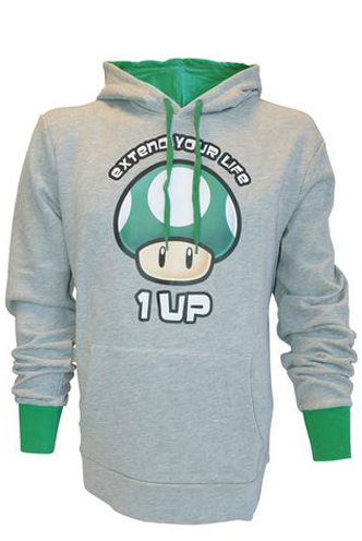 SUDADERA CON CAPUCHA: NINTENDO 1UP GRIS "UNISEX"