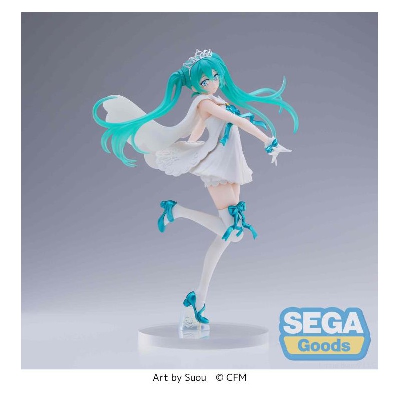 Estatua de PVC de Hatsune Miku de "Vocaloid" en su versión 15th Anniversary SUOU, tamaño aprox. 21cm.